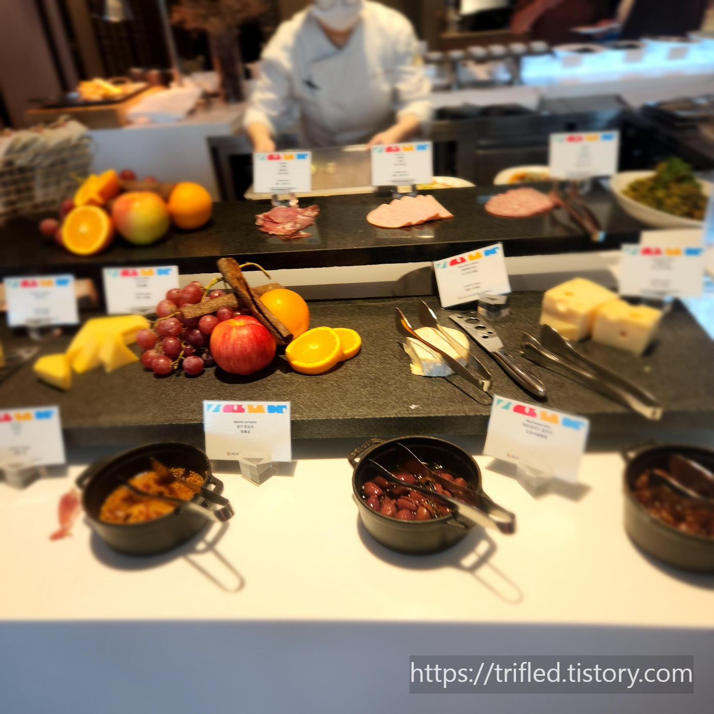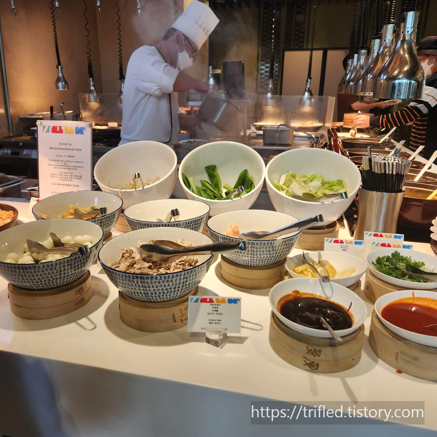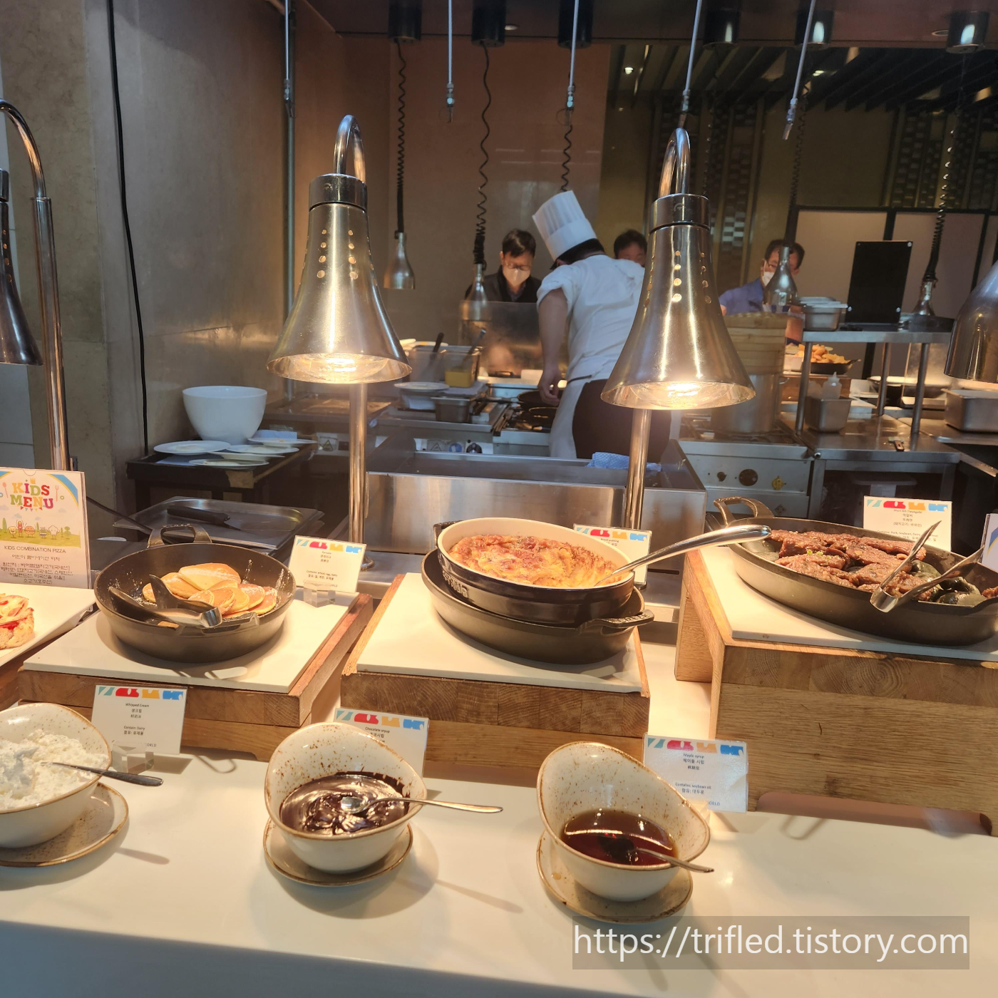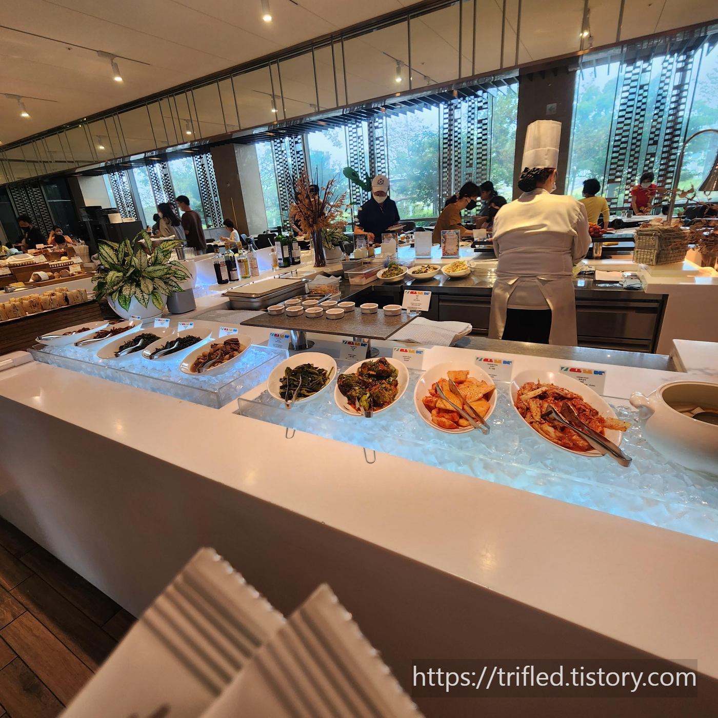 제주도에서 묵었던 특급호텔들은 제주 향토 음식도 함께 선보여 먹는 즐거움을 더했었는데, 신화월드 서머셋 조식 뷔페는 또 어떨지 기대하며 입장했습니다.