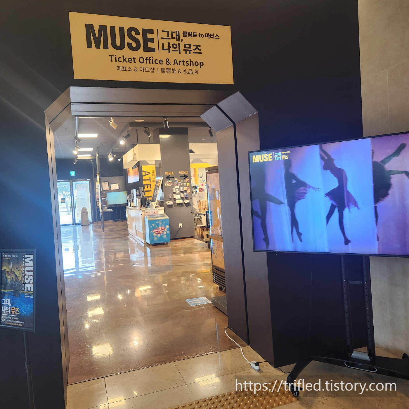 탐모라 클럽하우스 2층에서는 전시회가 있는 모양이던데, 조식당 입구 맞은편에 이렇게 매표소와 굿즈샵이 있었어요.